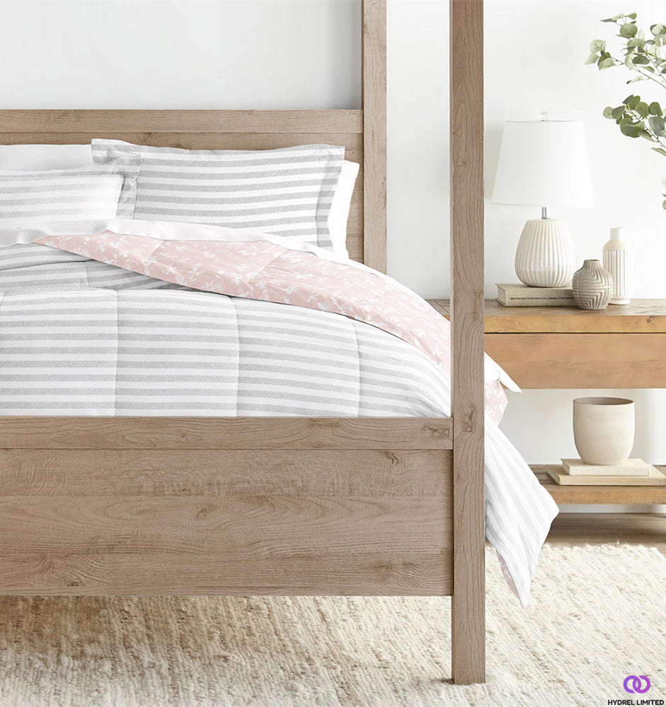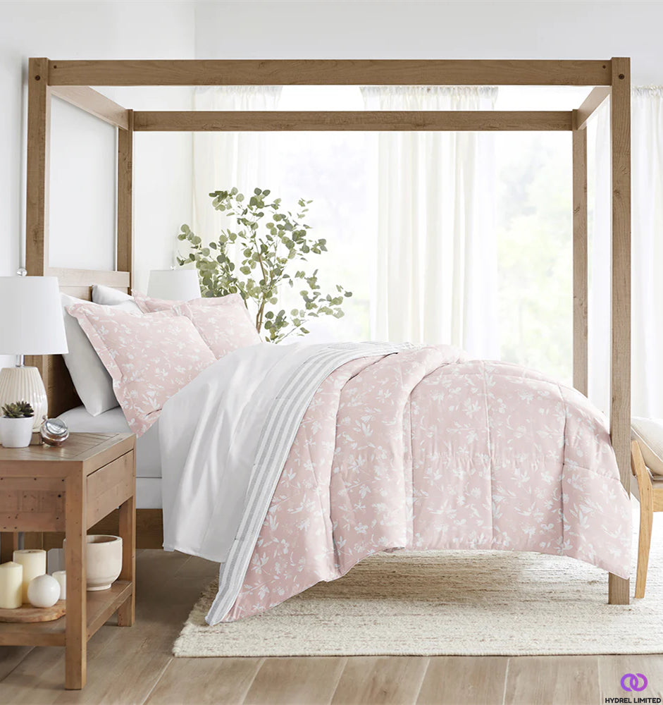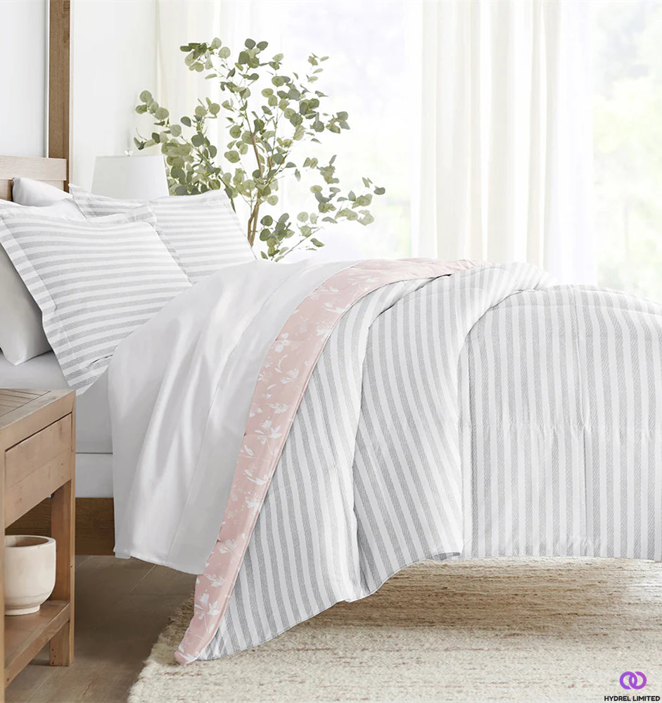 Refresh your bedding with this lightweight, all-season, reversible comforter set. Its down-like feel and soft, comfortable texture make it perfect for year-round comfort. Our premium yarn is twice as durable as cotton, meaning less risk of tears and fraying. It features a box stitch pattern to prevent fiber shifting.
